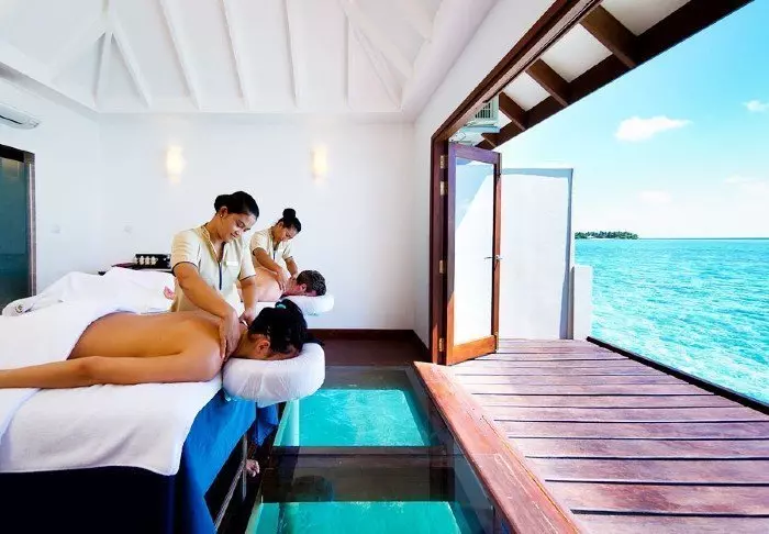 Nach einem Tag in der Sonne sollten Sie sich einen Besuch im Firuma Spa gönnen, das auf Pfählen im Wasser steht. Hier genießen Sie eine herrliche Massage, während Sie durch den Glasboden blicken. Vielleicht schwimmt Nemo vorbei! Auch mit einem Besuch im Dampfbad, verschiedenen Gesichtsbehandlungen, Maniküre und Pediküre können Sie sich verwöhnen lassen. Danach sind Sie bereit für einen neuen Tag in der Sonne.