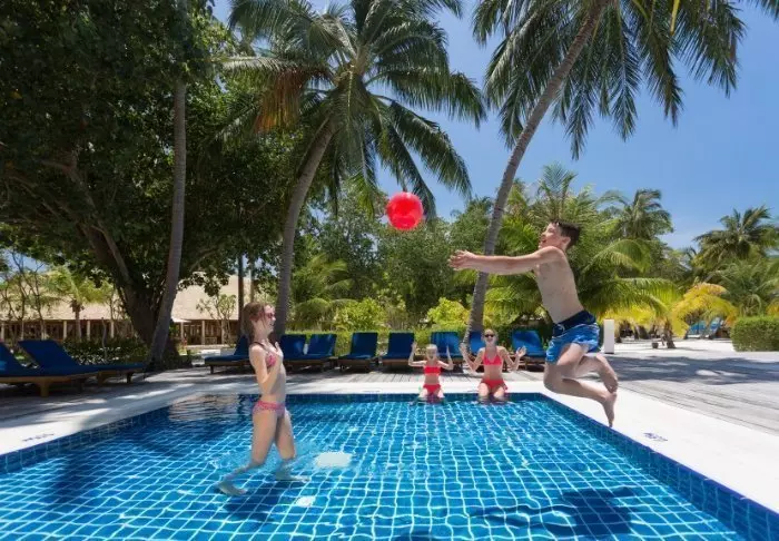 Meeru ist in zwei Bereiche unterteilt, einen speziell für Paare und einen für Familien mit einem Kinderbecken und einem familienfreundlichen Restaurant. Sandige Wege mit sich wiegenden Palmen und tropischen Bäumen und Sträuchern verbinden die verschiedenen Bereiche der Insel, so dass Sie nicht die ganze Insel umrunden müssen, um Ihr Lieblingsrestaurant oder den Swimmingpool zu erreichen. Wenn Ihnen die Entfernungen zu groß sind, können Sie ein Fahrrad mieten oder sich mit dem Buggy der Insel fahren lassen.
