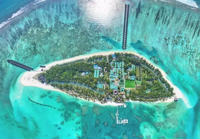 Diese luxuriöse Insel besitzt die Form eines Schmetterlings und ist mit dem Speedboot von Male innerhalb von ca. 40 Minuten erreichbar.