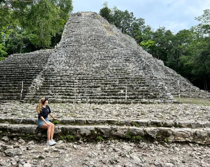 Zunächst geht es nach Cobá, einst die größte und bedeutendste Maya-Stadt der Region. Die Ruinen von Cobá liegen abenteuerlich und fast geheimnisvoll versteckt im Dschungel – hier können Sie Ihrem Entdeckerdrang freien Lauf lassen. Die Ruinen sind über ein großes Gebiet mit alten Verbindungspfaden, den sogenannte Sacbé verstreut. Sie werden in einem Radtaxi über die gewundenen Pfade durch die üppige Vegetation gefahren und erleben die mystischen Tempel und die beeindruckende Nohoch Mul-Pyramide, die mit ca. 42 m die höchste Pyramide auf der Yucatán-Halbinsel, die majestätisch über die Baumwipfel ragt.