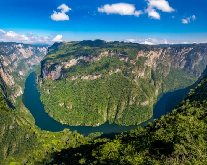 Sie werden morgens vom Hotel abgeholt und zum aufsehenerregenden Cañón del Sumidero gefahren. Dort erwartet Sie zwischen steilen Bergwänden auf beiden Seiten eine etwa zweistündige Fahrt durch die Schlucht mit einem Schnellboot.