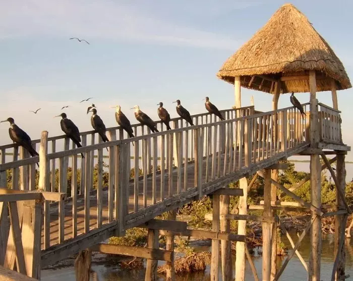 Der letzte Stopp auf der Rundreise, bevor es zurück zu Ihrem Hotel geht, ist Isla Pasión, ein idyllischer, einsamer Strand mit rosa Muscheln. Hier können Sie in den Aussichtsturm hinaufgehen und den beeindruckenden Blick auf die Lagune und Holbox genießen.