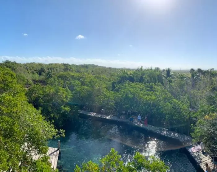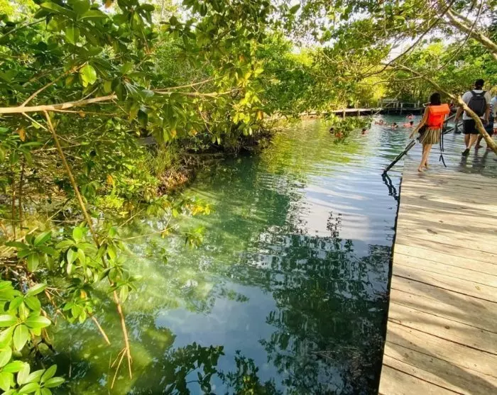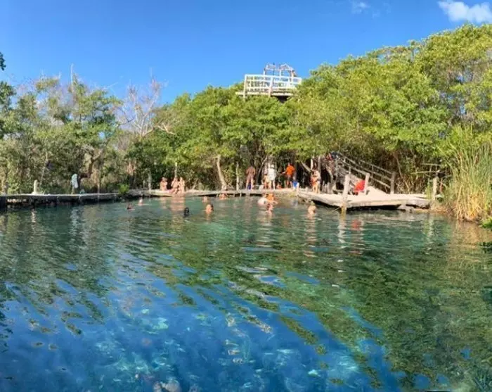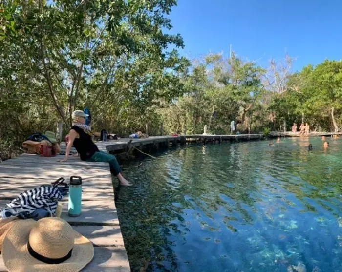 Es ist auch genug Zeit für ein erfrischendes Bad in den kristallklaren Gewässern des Cenote Ojo de Agua, der heilende Eigenschaften haben soll.