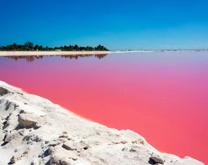 Dann geht es weiter zu den wunderschönen, von Menschen geschaffenen rosafarbenen Seen, Las Coloradas, wo Sie wunderschöne Bilder machen können. Die rote Farbe des Wassers ist auf eine hohe Konzentration an Salz und Mikroorganismen wie Rotalgen und Plankton zurückzuführen.