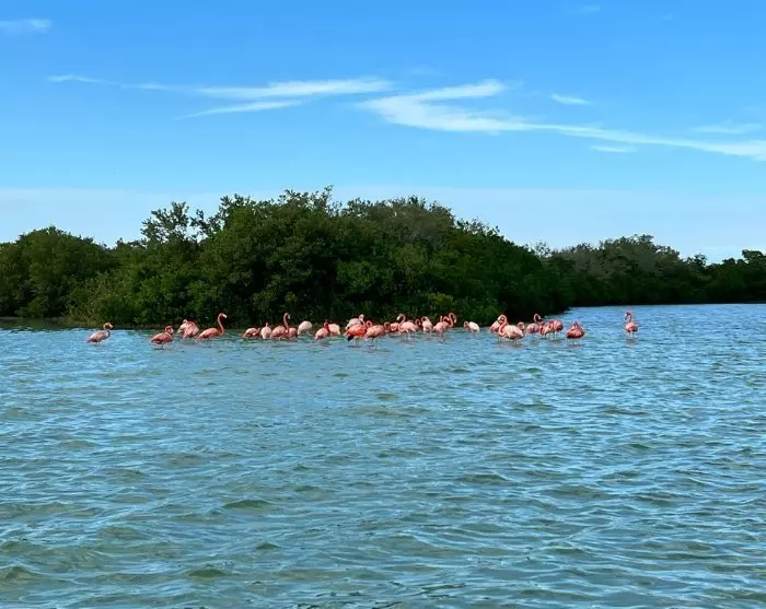 Am Morgen werden Sie von Ihrem Hotel abgeholt, danach wird der erste Stopp das kleine Fischerdorf Rio Lagartos sein, etwa 100 km nördlich von Valladolid. Hier starten Sie Ihr Naturabenteuer mit einer zweistündigen Bootsfahrt in das fast gleichnamige Biosphärenreservat: Ria Lagartos. Freuen Sie sich auf eine Fülle exotischer Vögel, einschließlich des wunderschönen rosa Flamingos, während Sie sich auf die Mangrovenkanäle begeben, um die großartige Vielfalt der Natur zu erkunden. Die Flamingos sind das ganze Jahr über zu sehen, aber sie sind besonders zahlreich in der Zeit von April bis August, da sie hier zusammenkommen, um sich zu paaren. Vielleicht haben Sie auch das Glück, ein Krokodil zu sehen, das am Rande des Wassers lauert.