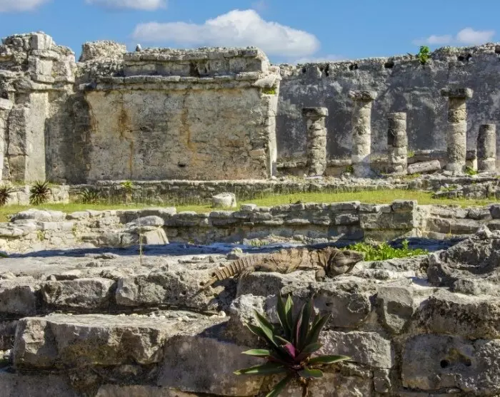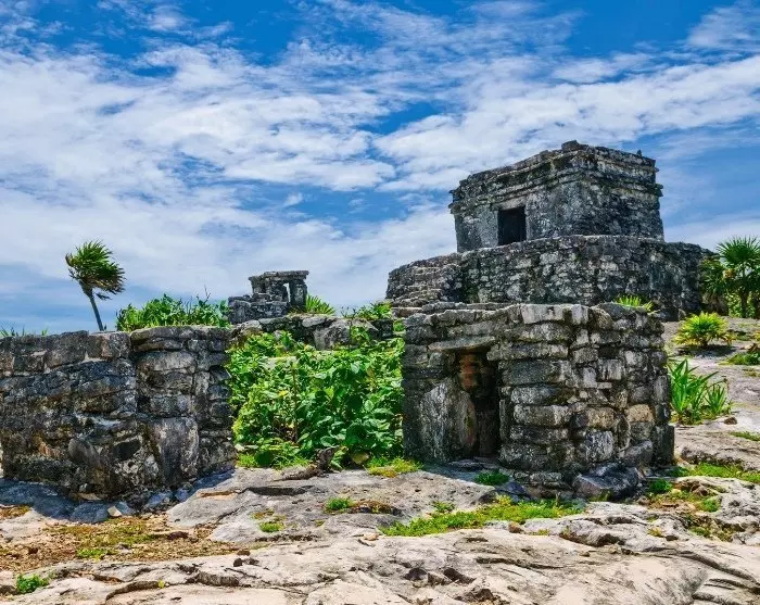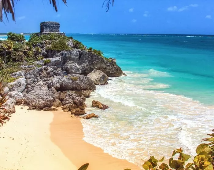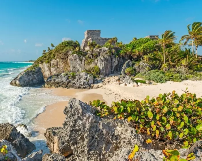 Der nächste Stopp auf dem Ausflug sind die Tulum-Ruinen, die auf einer Klippe mit spektakulärem Blick auf das türkisblaue Karibische Meer liegen. Hier können Sie die antiken Tempel erkunden und mehr über die spannende Geschichte und Kultur der Maya-Zivilisation erfahren, und das in atemberaubend schöner Umgebung.