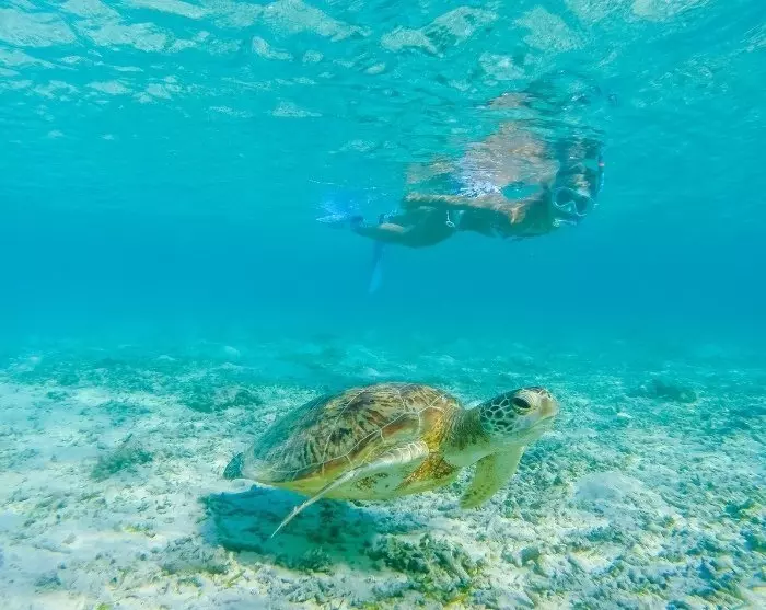 Sie beginnen den Tag damit, von Ihrem Hotel in Playa del Carmen abgeholt zu werden. Danach geht es in Richtung Akumal, einem der besten Schnorchel-Orte Mexikos. Akumal ist bekannt für seine stabile Population von Meeresschildkröten, die das ganze Jahr über in der Bucht bleiben. Hier haben Sie die Möglichkeit, die Meeresschildkröten im kristallklaren Wasser hautnah zu erleben, während Sie mit diesen fantastischen Tieren in ihrem natürlichen Lebensraum schnorcheln.