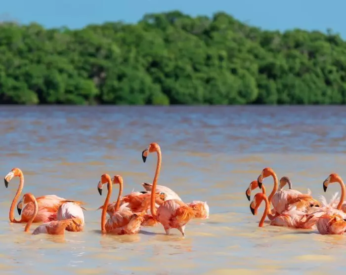 Bei der Ankunft im Nationalpark Celestun machen Sie zuerst eine erlebnisreiche Bootsfahrt im Nationalpark, der für seine vielen Mangroven und die beeindruckenden Vögel, die hier leben, bekannt ist. Fast immer während des Jahres können Sie ganze Kolonien mit faszinierenden, rosaroten Flamingos beobachten. Sie leben hier zusammen mit anderen exotischen Vögeln. Generell beherbergt der Nationalpark Celestun viele verschiedene Tiere. Halten Sie daher die Augen offen. Vielleicht haben Sie Glück und sehen unterwegs ein Krokodil. Die Bootsfahrt dauert rund eineinhalb Stunden. Unterwegs erzählt Ihr Guide Ihnen mehr über das Gebiet.