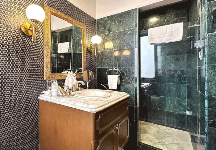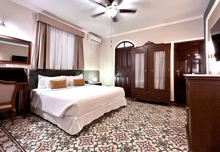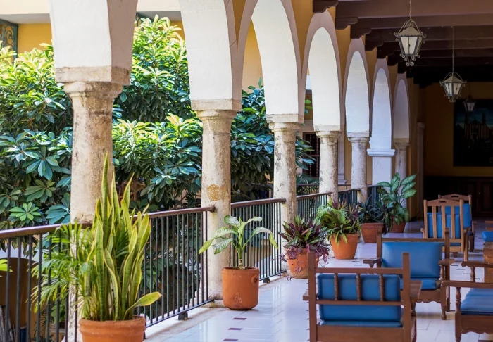Das Hotel ist ebenfalls ein historischer Kolonialbau mit vielen wunderschönen Details wie einem Gewölbe und bunten Fliesen am Boden sowie mit einem malerischen Atrium in der Mitte des Gebäudes.