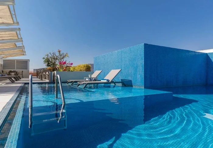 Nach einem erlebnisreichen Tag voller Besichtigungen erwartet Sie ein erfrischender Sprung in den Pool auf der Dachterrasse.