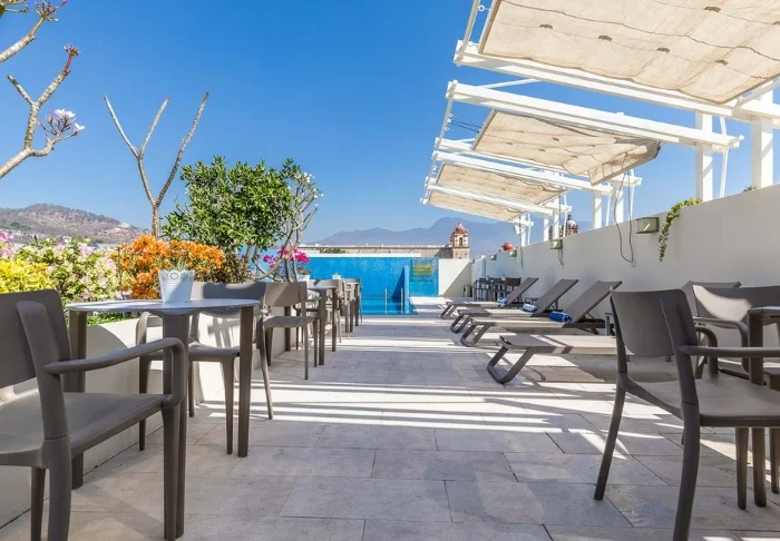 Am Ende eines ereignisreichen Tages können Sie sich in einer Sonnenliege am Pool entspannen. In der Rooftop-Bar des Hotels können Sie außerdem ein erfrischendes Getränk genießen, und von dort aus haben Sie auch Aussicht auf den zentralen Platz der Stadt – den Zocalo.