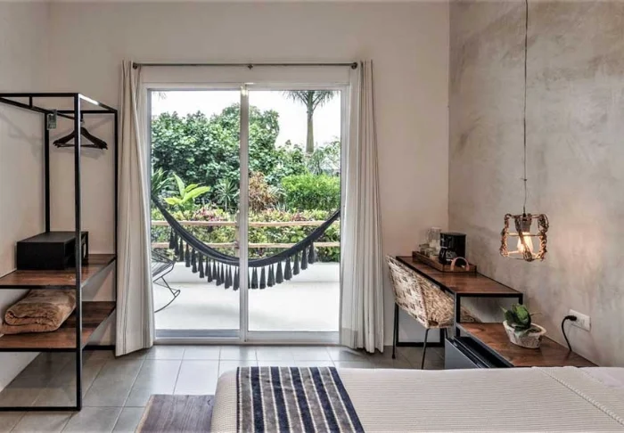 Die Hotelzimmer sind einfach und modern eingerichtet, mit Klimaanlage, WLAN, Deckenventilator, Sofa, Safe, Minibar, Tee- und Kaffee-Ecke. Jedes Zimmer hat einen eigenen Balkon mit Hängematte für eine kleine Siesta nach den Abenteuern des Tages.
