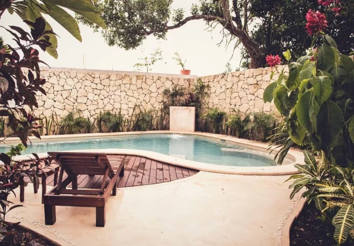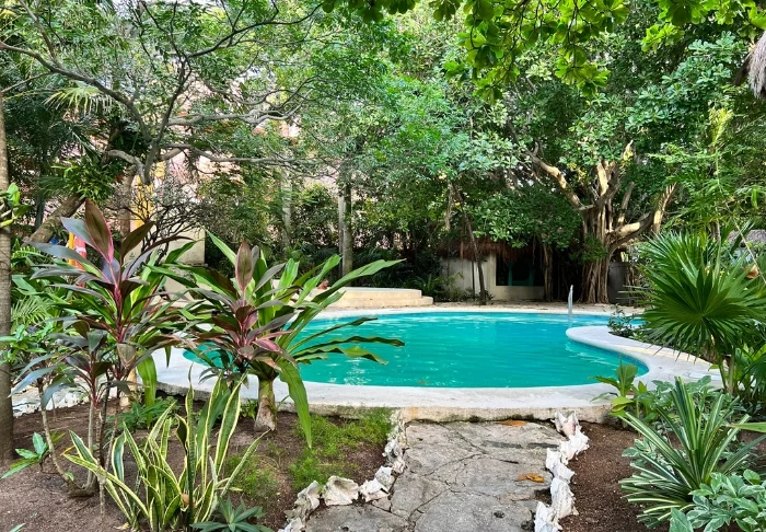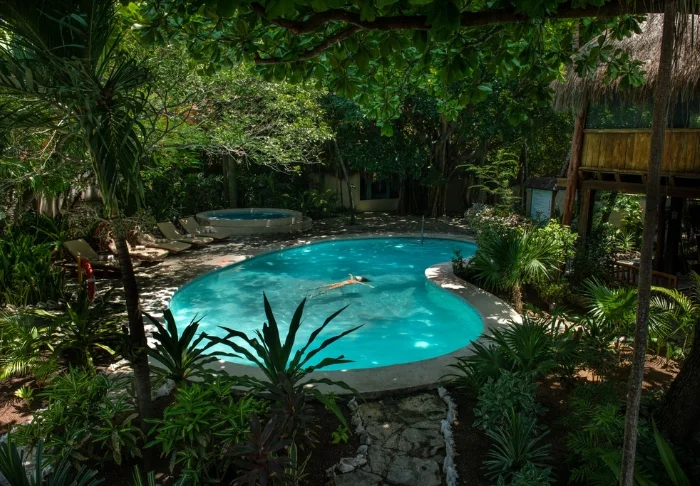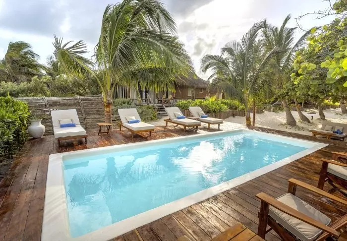 Neben dem Hauptrestaurant befinden sich der Swimmingpool und die angrenzende Poolbar. Sie können zur Poolbar schwimmen und etwas Kaltes trinken, ohne den Pool verlassen zu müssen. Sowohl am Pool als auch im Hotelgarten befinden sich Sonnenliegen, in denen Sie ein gutes Buch im Schatten einer Palme lesen können. Wenn Sie die kleine Sandstraße überqueren, kommen Sie zum berühmten Strand von Holbox mit seinem azurblauen Wasser und einer warmen Meeresbrise. Hier stehen ebenfalls Sonnenliegen zur kostenlosen Nutzung zur Verfügung. Sie können darum bitten, dass bestellte Speisen und Getränke zu Ihnen an den Strand gebracht werden, wenn Sie sich ein wenig extra verwöhnen wollen.