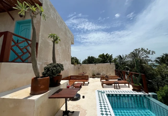 Willkommen an einem magischen Ort, der Charme und Idylle verströmt. Le Muuch ist ein gemütliches Boutique-Hotel, in dem jede Ecke mit bunten Kunsthandwerk-Objekten, wunderschönen Blumen und exotischen Pflanzen geschmückt ist.