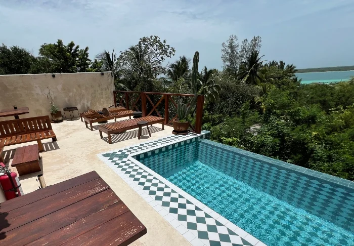 Das Hotel Aires Bacalar ist eine reizvolle Oase an der herrlichen Lagune der Stadt.