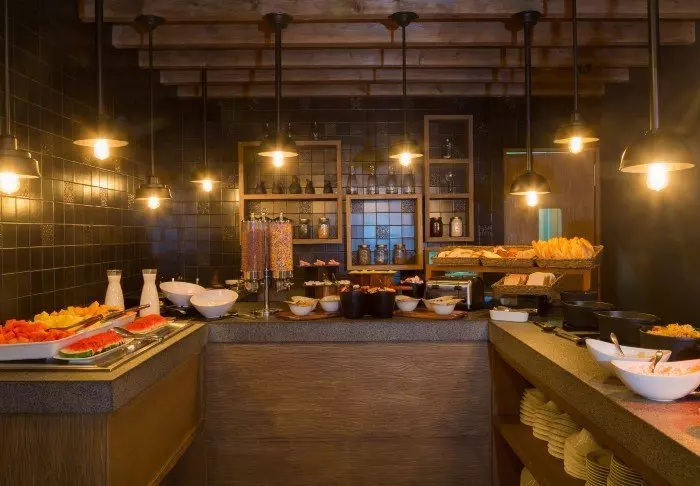 Das Restaurant ist auch tagsüber zum Mittag- und Abendessen geöffnet und Sie können sowohl vom Buffet wählen als auch À-la-carte-Gerichte von der Speisekarte bestellen.