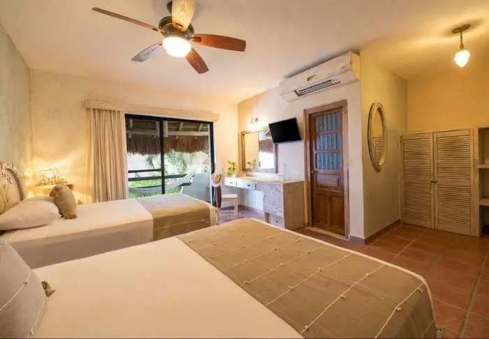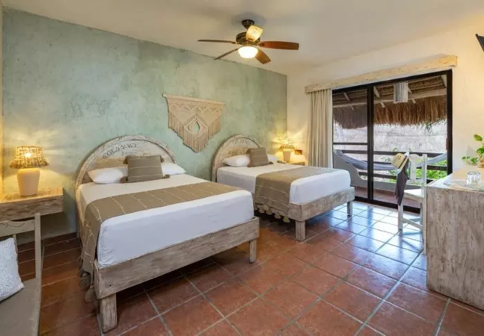 Das Hotel bietet 33 Zimmer, die alle im hellen, rustikal-mexikanischen Stil eingerichtet sind, also mit Holzmöbeln und Dekoelementen, die dem Ort eine entspannte und heimelige Atmosphäre verleihen.