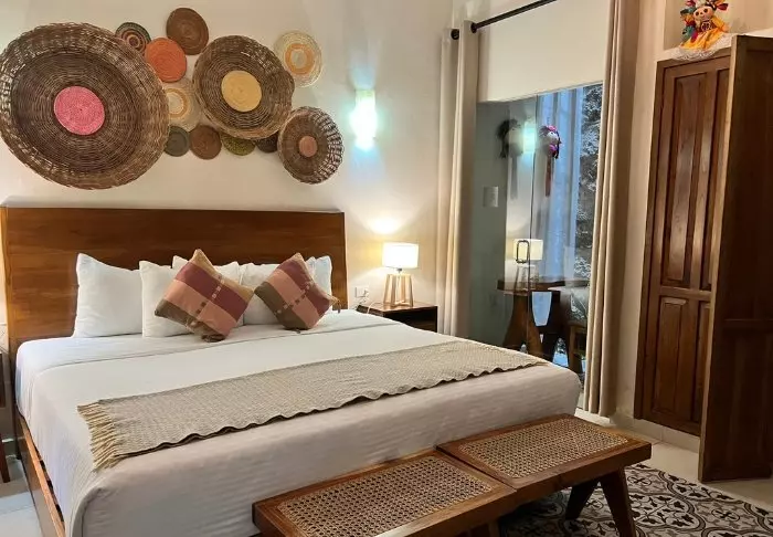 Das Hotel hat nur 21 Zimmer, und jedes ist auf seine eigene, einladende Weise gestaltet. Alle Zimmer sind mit Klimaanlage, Fernseher, Safe, Deckenventilator sowie Badezimmer mit Haartrockner ausgestattet.