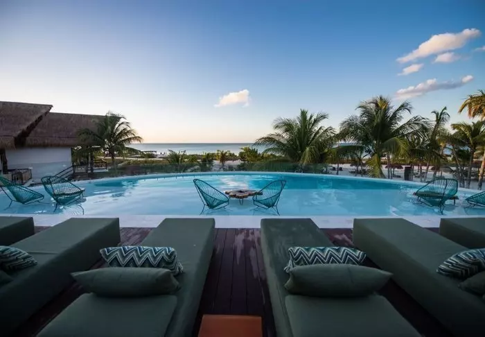 Neben dem Hauptrestaurant befinden sich der Swimmingpool und die angrenzende Poolbar. Sie können zur Poolbar schwimmen und etwas Kaltes trinken, ohne den Pool verlassen zu müssen. Sowohl am Pool als auch im Hotelgarten befinden sich Sonnenliegen, in denen Sie ein gutes Buch im Schatten einer Palme lesen können. Wenn Sie die kleine Sandstraße überqueren, kommen Sie zum berühmten Strand von Holbox mit seinem azurblauen Wasser und einer warmen Meeresbrise. Hier stehen ebenfalls Sonnenliegen zur kostenlosen Nutzung zur Verfügung. Sie können darum bitten, dass bestellte Speisen und Getränke zu Ihnen an den Strand gebracht werden, wenn Sie sich ein wenig extra verwöhnen wollen.