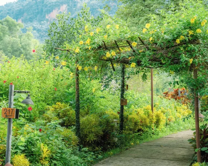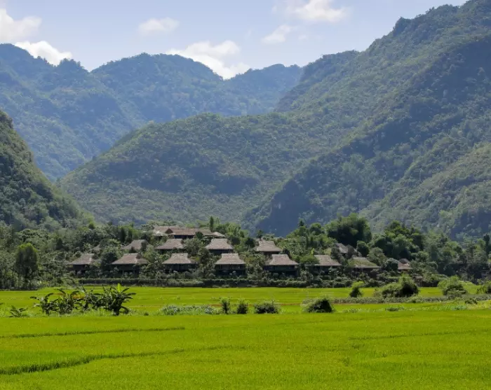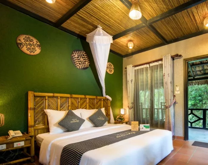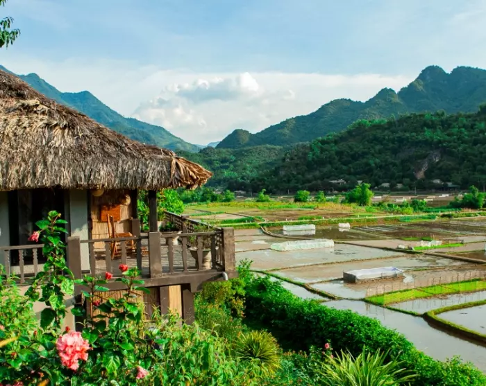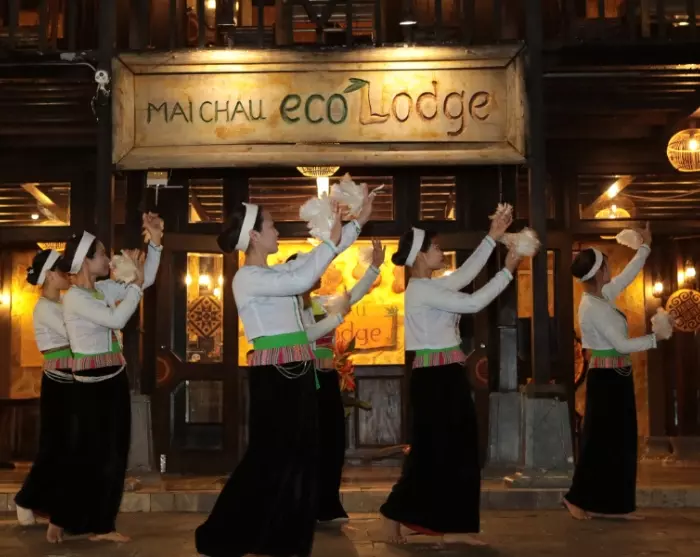 In Mai Chau leben mehrere ethnische Minderheiten Vietnams, und die lokale Kultur steht im Zentrum der Ecolodge. Rund 90 % der Mitarbeitenden stammen aus nahegelegenen Dörfern, viele von ihnen gehören zu den ethnischen Minderheiten der Region. Das Team trägt die traditionelle Kleidung seiner jeweiligen Volksgruppe und ermöglicht Gästen dadurch authentische Einblicke in lokale Traditionen. Die Architektur der Lodge ist von traditionellen Pfahlbauten inspiriert, und die Zimmer sind mit farbenfrohen Textilien und Mustern gestaltet, die das kulturelle Erbe der Region widerspiegeln. Abends genießen Sie traditionelle Musik und Tanz, die die ruhigen Bergnächte zum Leben erwecken.