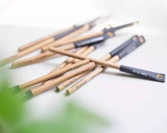 Das Salinda Resort wurde so gestaltet, dass es sich natürlich in seine Umgebung einfügt. Die Architektur greift lokale Materialien und Handwerkskunst auf, und die Gebäude sind mit Respekt vor der Landschaft und Vegetation der Insel angeordnet. Grünflächen wurden bewahrt und in das Erscheinungsbild und die Atmosphäre des Resorts eingebunden, sodass Pflanzen und Bäume nicht nur Dekoration, sondern lebendiger Bestandteil des Ganzen sind. Das sorgt für Schatten, natürliche Kühlung und Lebensräume für heimische Tierwelt und verringert zugleich den Bedarf an energieintensiven Lösungen.