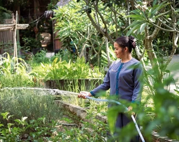 Santhiyas „Growing Green“-Initiative zielt darauf ab, die Umweltbelastung durch innovative, umweltfreundliche Lösungen zu minimieren. Die Architektur ist von traditionellen thailändischen Baustilen inspiriert und die Anlage wird aus nachhaltigem Holz gebaut. In den hoteleigenen Gärten werden Bio-Gemüse und Kräuter angebaut, wodurch der Bedarf an importierten Waren reduziert wird und Sie frische, lokal produzierte Lebensmittel genießen können. Um den Ressourcenverbrauch zu reduzieren, setzt Santhiya auf energiesparende Lösungen wie Solarenergie, LED-Beleuchtung und wassersparende Installationen. Zusätzlich pflanzen sie Bäume auf eigenem Gelände und fördern die Mülltrennung und das Recycling, um eine Kreislaufwirtschaft zu unterstützen und ihren CO₂-Fußabdruck zu verringern.