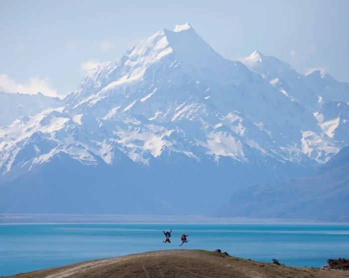 Ihre Fahrt führt weiter entlang des Lake Pukaki (Pūkahaki), wo Sie spektakuläre Ausblicke auf Neuseelands höchsten Berg genießen: Mount Cook (Aoraki), der eindrucksvoll 3.724 Meter in den Himmel ragt. Sie erreichen den Aoraki/Mount-Cook-Nationalpark, wo Ihnen der restliche Tag zur Verfügung steht, um die beeindruckende Umgebung zu genießen und zu erkunden.