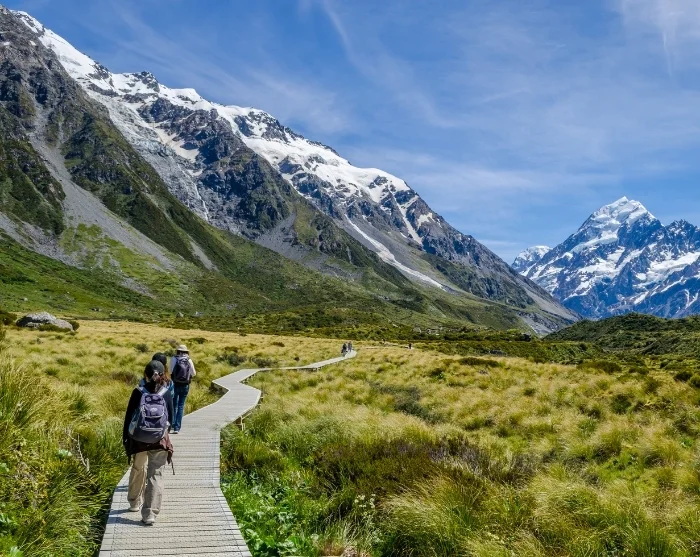 Mount Cook Village ist ein Paradies für Naturliebhaber und Wanderfreunde. Hier finden Sie wunderschöne, selbst geführte Wanderungen in unterschiedlichen Schwierigkeitsgraden – jede mit ihren eigenen Höhepunkten. Beispielsweise können Sie den Kea Point Track (leicht – ca. 3 km), den Tasman Glacier View Track (leicht – ca. 2,5 km) oder den Hooker Valley Track (leicht – ca. 10 km) erkunden. Bitte beachten Sie, dass ein Teil des Hooker Valley Tracks derzeit aufgrund von Erosion sowie dem Bau einer neuen Hängebrücke gesperrt ist. Die Arbeiten werden voraussichtlich bis Ende 2026 andauern.