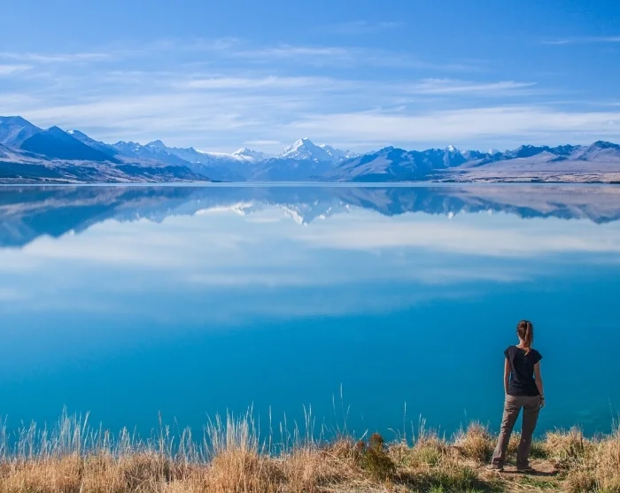 Nachdem Sie Christchurch hinter sich gelassen haben, fahren Sie über die sanft geschwungenen Canterbury Plains in Richtung zentrales Hochland und zu den schneebedeckten Gipfeln der Southern Alps. Gönnen Sie sich eine Kaffeepause vor eindrucksvoller Kulisse am Lake Tekapo (Takapō), der für sein kristallklares, türkisfarbenes Wasser und die charmante Steinkapelle, die Church of the Good Shepherd, berühmt ist.
