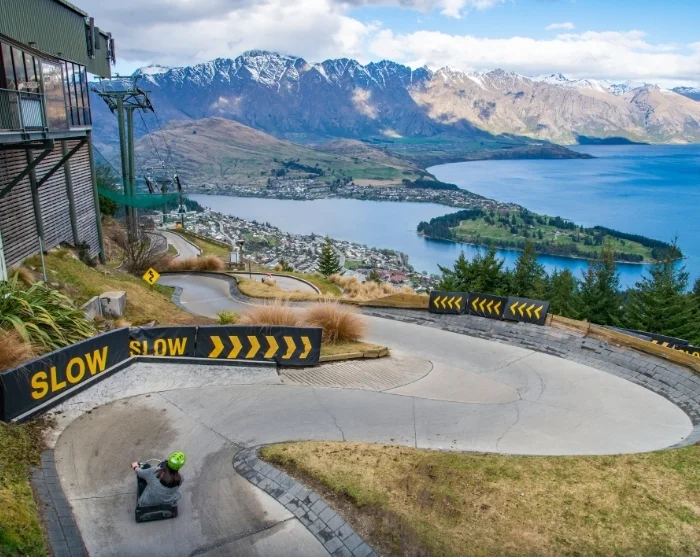 Viele Besucher nehmen die historische Gondel hinauf zum Bob’s Peak und genießen von dort aus einen atemberaubenden Panoramablick über den Lake Wakatipu, dessen Skyline von der beeindruckenden Remarkables-Gebirgskette dominiert wird. Auf dem Gipfel gibt es ein Café, perfekt für eine kleine Stärkung. Zudem können Sie die unterhaltsame Rodelstrecke ausprobieren – eine Art Bobbahn auf Rädern.