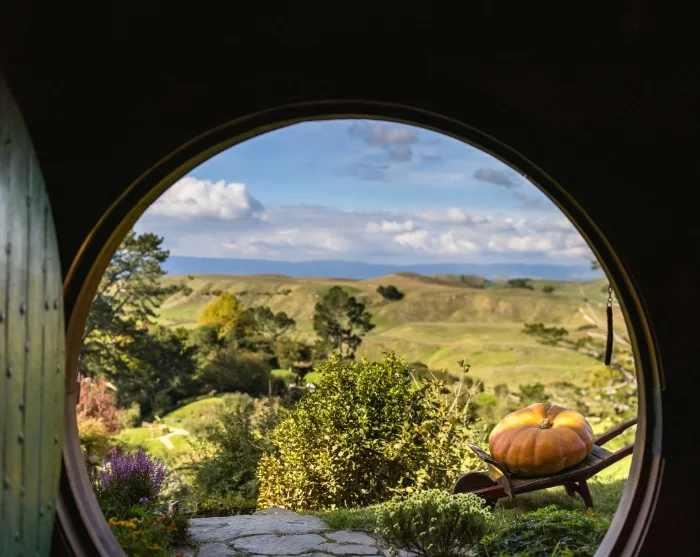 Sie verlassen Auckland und fahren im Minibus mit einem lokalen Guide in Richtung Rotorua. Die Route führt Sie nach Süden durch malerische Landschaften in die Region Waikato – eine der wichtigsten Agrarregionen des Landes. Eingebettet in diese grünen Hügel liegt das Hobbiton Movie Set, der originale Drehort der Filmreihen Der Herr der Ringe und Der Hobbit.