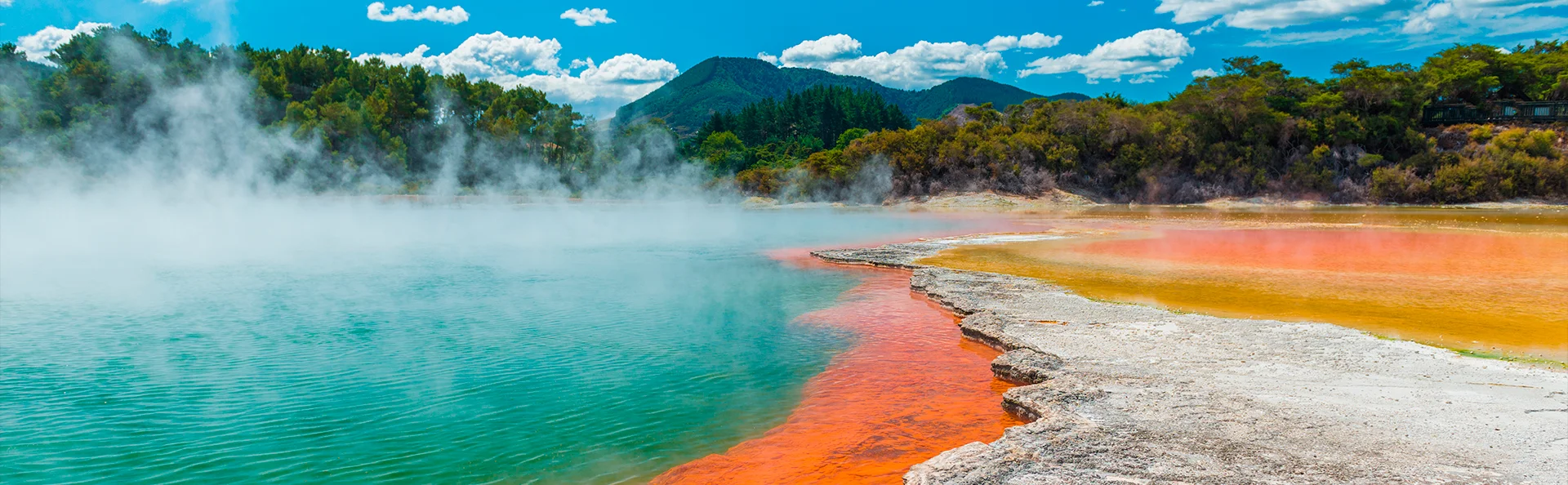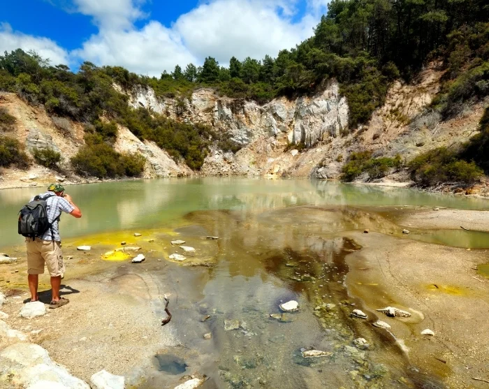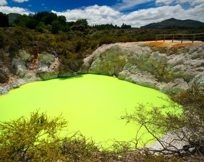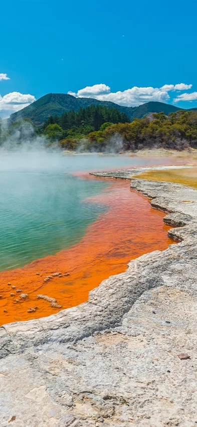Die Reise führt Sie anschließend nach Wai-O-Tapu, wo die Kräfte der Natur eine farbenfrohe und faszinierende geothermische Landschaft geschaffen haben. Dort begegnen Sie dem Champagne Pool, Kraterseen und Schwefeldampfwolken, die geheimnisvoll aus der Erde aufsteigen. Es fühlt sich wirklich an, als hätten Sie einen anderen Planeten betreten – und ja, es liegt ein schwefliger Geruch in der Luft, doch genau das gehört zu diesem besonderen Erlebnis dazu.