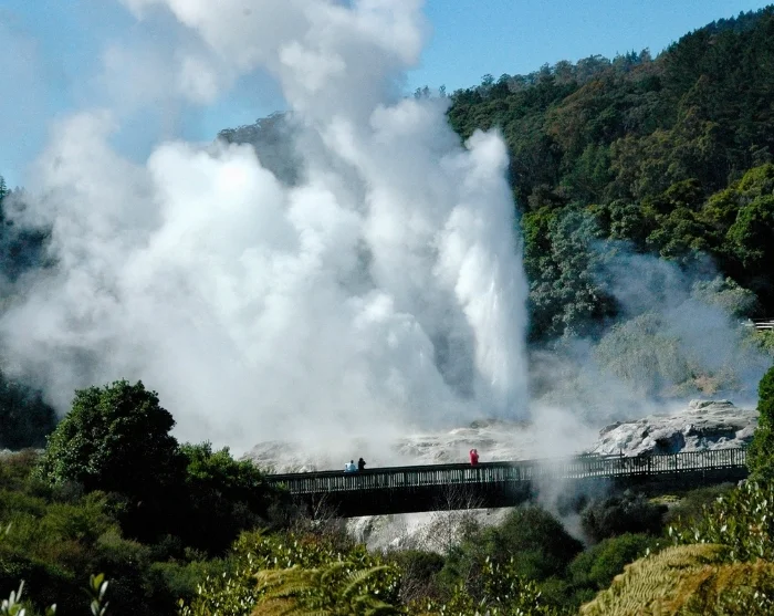 Wer Rotoruas einzigartige Naturschönheiten entdecken möchte, kann an dem Ausflug „Die Seele von Rotorua“ teilnehmen. Sie besuchen den Te Puia Thermalpark, in dem der Pōhutu-Geysir mehrmals täglich bis zu 30 Meter in die Höhe schießt. Darüber hinaus erwarten Sie beeindruckende Ausblicke auf den Blue Lake und Green Lake und ein Spaziergang durch den majestätischen Redwood Forest, der für seine imposanten Bäume und den weichen Waldboden bekannt ist.