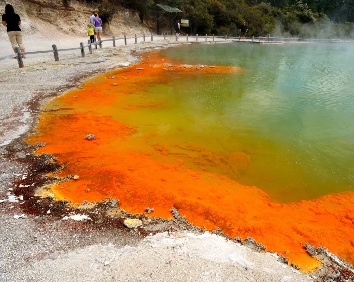 Hier können Sie unter anderem den fast unwirklich wirkenden Champagne Pool mit seinem orangefarbenen Rand und der brodelnden Oberfläche erleben, ebenso wie farbenfrohe Kraterseen und dampfende Pfade, die Sie durch eine Landschaft führen, die wie von einem anderen Planeten wirkt. Und ja – es riecht hier nach Schwefel, doch das gehört zum Erlebnis dazu.