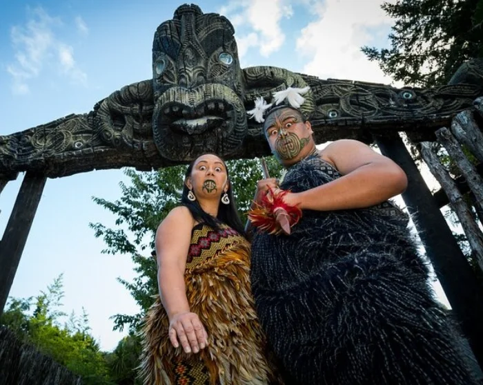 Bei der Ankunft werden Sie bei einer traditionellen Begrüßungszeremonie (pōwhiri) begrüßt, der eine dramatische und mitreißende Vorstellung folgt, in der Maorigeschichten und -traditionen durch Gesang und Tanz vermittelt werden.