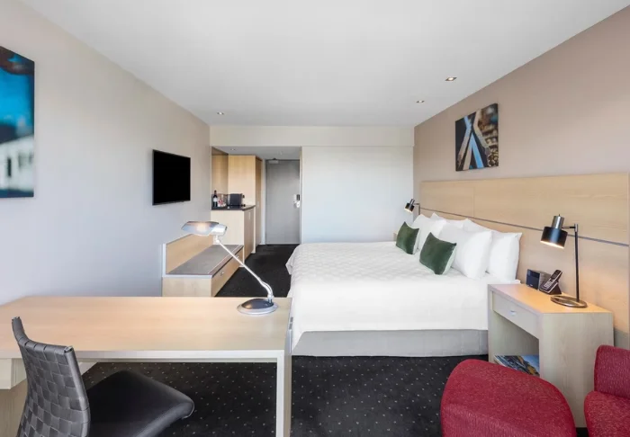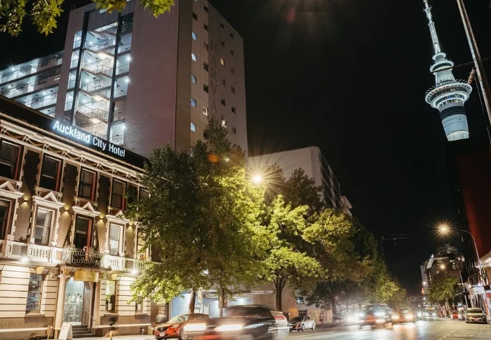 Das Auckland City Hotel liegt an der Hobson Street, mitten im Herzen des Central Business District (CBD) von Auckland. Viele der wichtigsten Sehenswürdigkeiten der Stadt, wie der Sky Tower, die Queen Street, der Victoria Park Market und die belebte Uferpromenade am Viaduct Harbour, erreichen Sie von hier aus bequem in 5–10 Gehminuten.