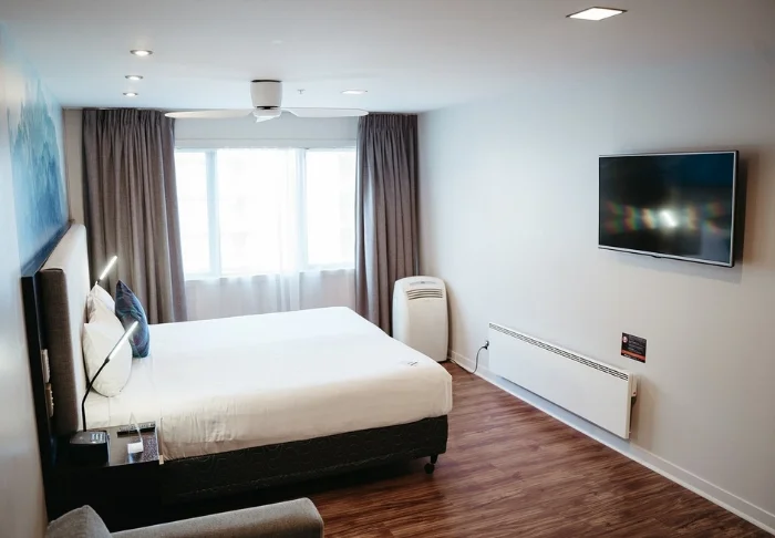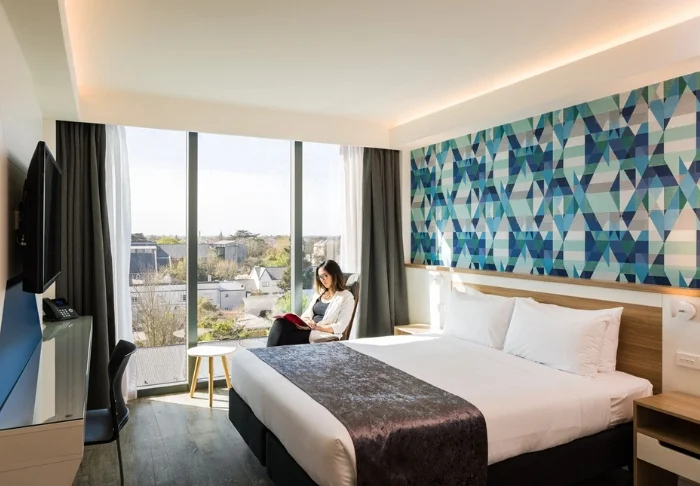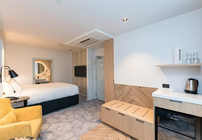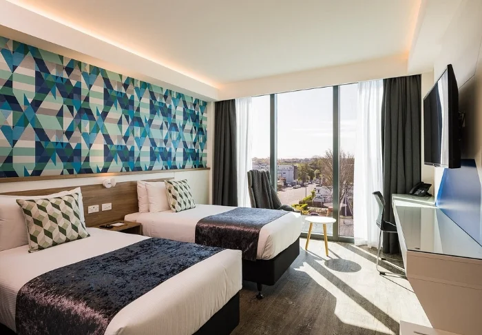 Das Hotel ist stilvoll und modern, komfortabel und hochwertig eingerichtet. Jedes der 88 Zimmer verfügt über große Fenster und viel Tageslicht. Die Zimmer sind entweder mit Kingsize Doppelbett oder zwei Einzelbetten eingerichtet und verfügen über ein eigenes Badezimmer, Klimatisierung, Schreibtisch, Safe, Bügeleisen und -brett und Smart-TV. Außerdem ist das WLAN kostenlos, es gibt einen Wasserkocher wie auch kostenlosen Tee, Kaffee und warmen Kakao.