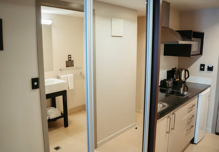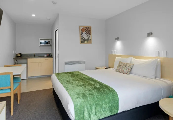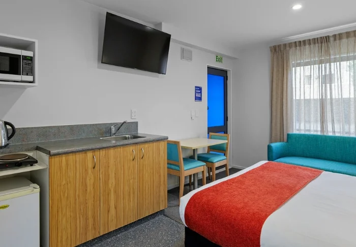 Die 25 geräumigen Einheiten sind hell eingerichtet und verfügen über eigene Badezimmer und eine gut ausgestattete Teeküche mit Mikrowelle, Kühlschrank und Kochplatten, damit Sie problemlos eigene Mahlzeiten zubereiten können.