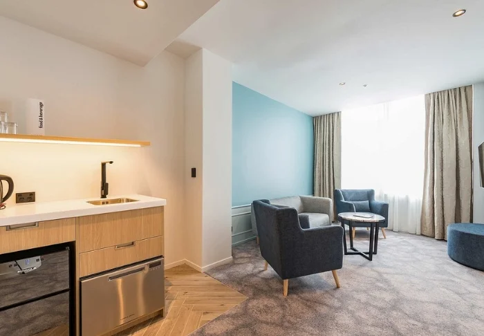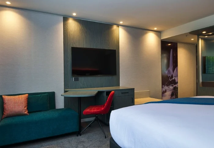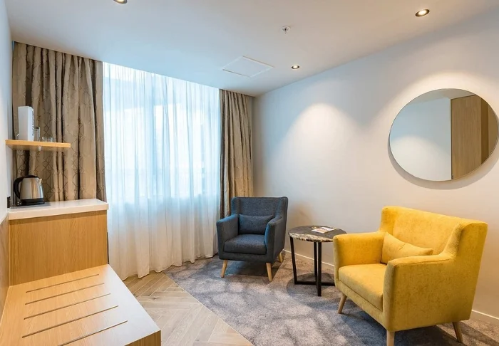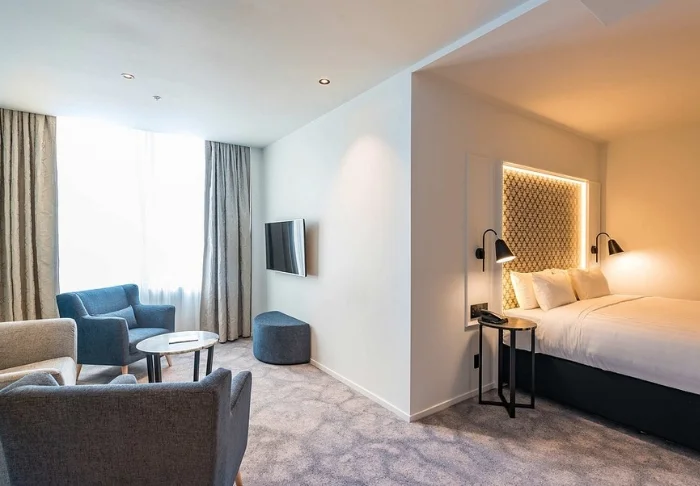 Das Hotel ist modern und stilvoll mit Sinn für Komfort und Nachhaltigkeit eingerichtet. Jedes der 86 Zimmer verfügt über ein eigenes Badezimmer, eine Minibar, Safe, Smart-TV, Schreibtisch, Wasserkocher und die Möglichkeit, Tee oder Kaffee zuzubereiten. Während Ihres Aufenthalts haben Sie natürlich auch kostenlose WLAN-Verbindung.