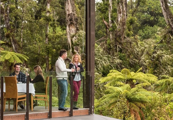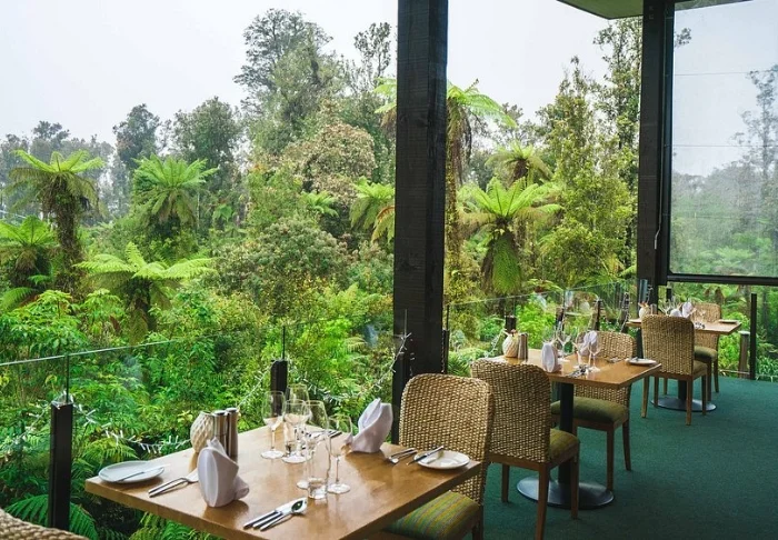 Wenn der Hunger sich meldet, bietet sich das hoteleigene Nikau Restaurant an, in dem frische regionale Speisen in wunderschöner Umgebung serviert werden. Wenn Sie sich bei einem Glas Wein, einem Cocktail oder einem kalten Bier entspannen möchten, bietet sich die nette hoteleigene Bar Zazu an.