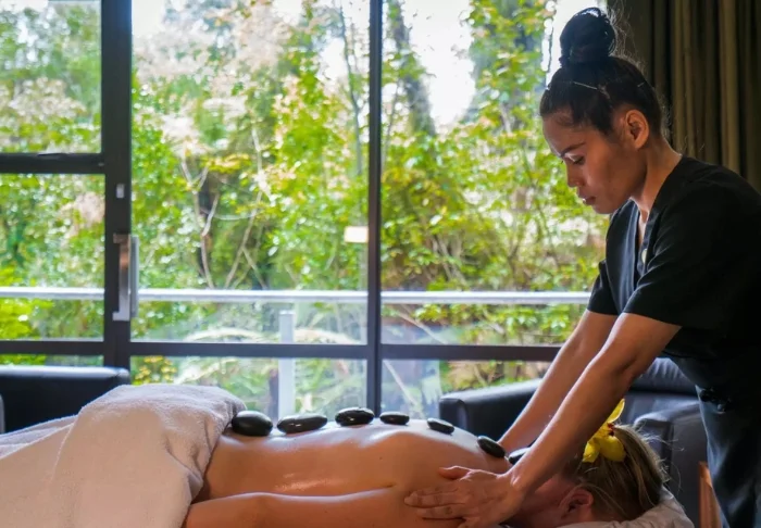 Wenn Sie vollkommen abschalten möchten, können Sie sich in den ruhigen Lounge-Bereichen zurückziehen, das Spa aufsuchen (gegen Aufpreis) oder ganz einfach die Geräusche aus dem umliegenden Wald genießen.