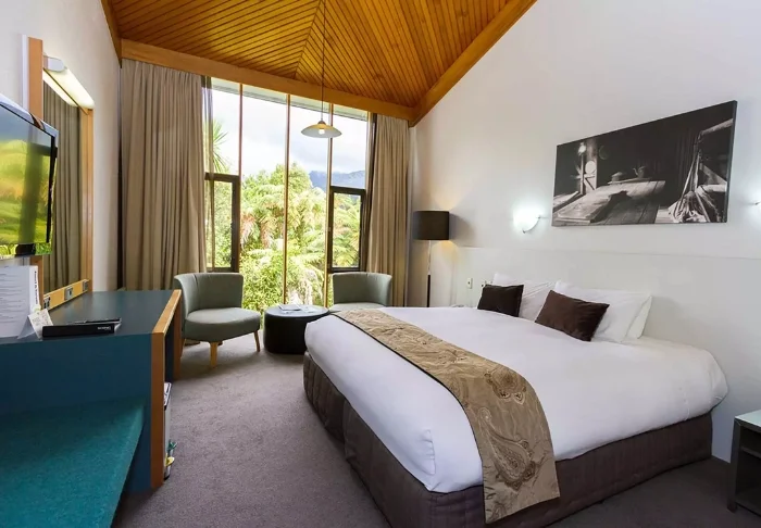 Das Hotel verfügt über 227 nett eingerichtete Zimmer und Suiten mit Aussicht entweder auf Lake Rotorua oder auf den üppigen gründen Garten. Alle Zimmer sind mit kostenlosem WLAN, LCD-Flachbettbildschirm-TV, Safe, Möglichkeiten zur Zubereitung von Tee oder Kaffee ausgestattet, damit Sie sich auf Ihrem Zimmer bei einer Tasse Kaffee oder Tee entspannen können.