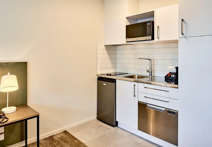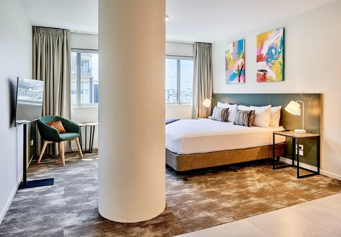 Das Apartmenthotel befindet sich in einem bestehenden Gebäude, wodurch kein Zimmer dem anderen gleicht. Insgesamt gibt es 75 moderne Zimmer in unterschiedlichen Größen – von kompakten Studios bis hin zu geräumigen Apartments, die sich ideal für Familien oder Gruppen eignen. Die Zimmer sind elegant eingerichtet und verfügen über eine Kitchenette mit Espressomaschine, Kochfeld, Mikrowelle und Kochutensilien, sodass Sie Ihre eigenen Mahlzeiten zubereiten können. Jedes Zimmer hat außerdem ein eigenes Bad, einen Safe, kostenloses WLAN, einen Smart-TV, eine Klimaanlage und doppelt verglaste Fenster, die für eine erholsame Nachtruhe sorgen – selbst im Herzen der Stadt.