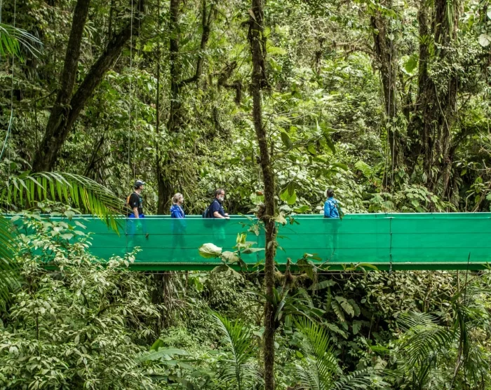 In Monteverde entdecken Sie den mystischen Nebelwald, wo Hängebrücken Sie durch die Baumwipfel führen und Ihnen einen einzigartigen Blick auf die reiche Flora und Fauna der Region bieten.
