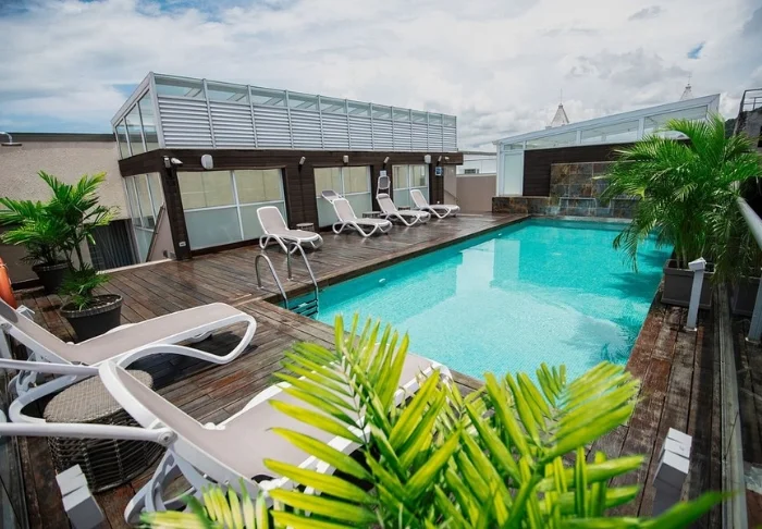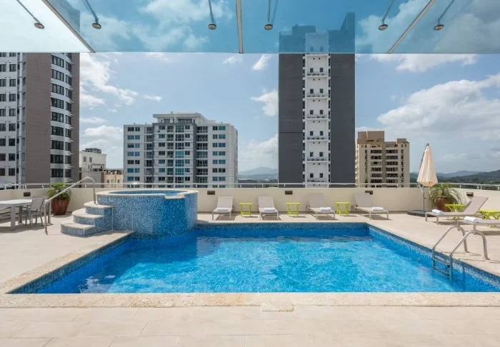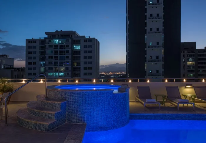 Die Dachterrasse des Hotels ist der ideale Ort, um nach einem erlebnisreichen Tag bei einem erfrischenden Bad im Pool zu entspannen. Gönnen Sie sich eine wohlverdiente Pause auf einer Sonnenliege oder relaxen Sie im Jacuzzi und genießen dabei den Panoramablick über Panama-Stadt. Wer auch im Urlaub aktiv bleiben möchte, kann die hoteleigene Sauna und den Fitnessraum nutzen.