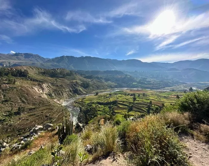 Frühmorgens geht es zum Colca-Tal, einer 3.400 Meter tiefen Schlucht, die zu den tiefsten Schluchten der Welt gehört. Zum Vergleich: Das Colca-Tal ist ungefähr doppelt so tief wie der Grand Canyon in den USA.