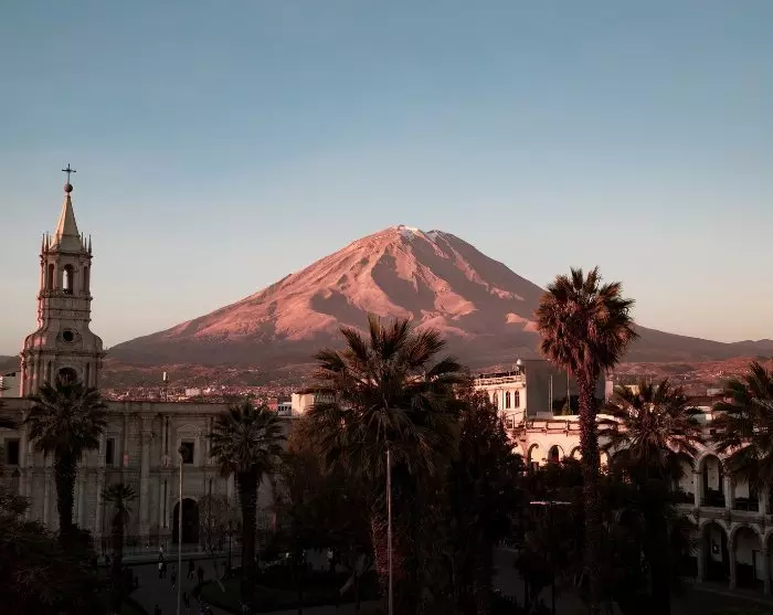 Arequipa liegt beinahe 2.400 Meter über dem Meeresspiegel in den wunderschönen Anden, mit herrlicher Aussicht auf die Vulkane Misti (5.822 m), Chachani (6.057 m) und Picchu Picchu (5.699 m). Die Stadt heißt auch „Die weiße Stadt“, da die meisten Häuser aus vulkanischem Gestein bestehen.