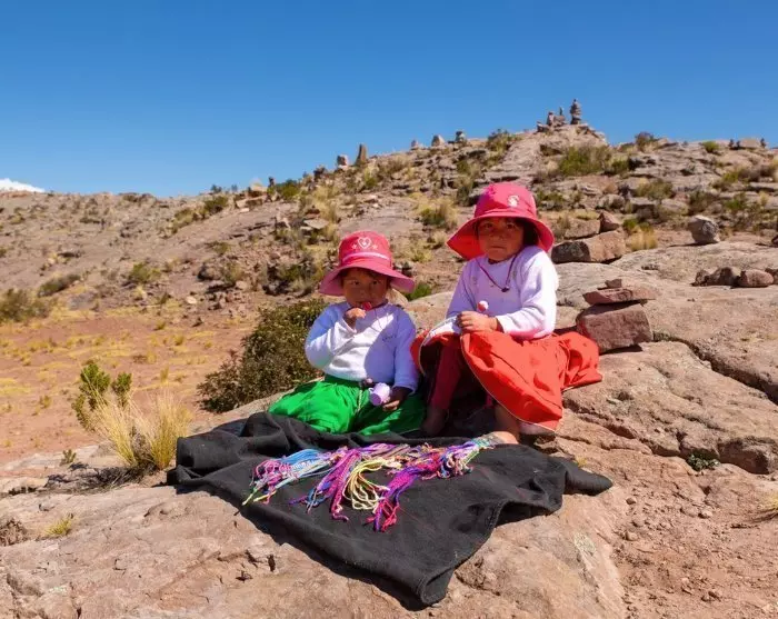Danach fahren Sie mit dem Boot weiter zur friedlichen Insel Taquile, die besonders für ihr buntes Kunsthandwerk und ihre „strickenden Männer“ bekannt ist. Auf dieser Insel stricken nämlich die Männer. Und das können sie wirklich gut! Das Muster an der Strickhaube eines Mannes, die Chullo genannt wird, zeigt nicht nur seine Kreativität, sondern auch seinen Zivilstand. Die Frauen übernehmen das Spinnen des Garnes und das Weben. Es sind auch die Frauen, die wunderschöne Gürtel für die Kleider der Männer weben.
