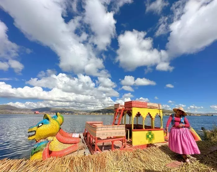 Vom Hafen der Stadt fahren Sie zuerst mit dem Boot zu den schwimmenden Schilfinseln, Islas Uros, die noch immer vom Volk der Uros bewohnt werden. Dieses Volk nutzt die kostenlosen Baumaterialien des Sees, das starke Totora-Schilf, mit dem Sie u. a. die Inseln, Häuser und Boote bauen. Obwohl die Inseln heute doch ein wenig kommerziell genutzt werden, ist es noch immer faszinierend, mehr über die Kultur der Uros und ihre alten Traditionen zu erfahren und ihr beeindruckendes Handwerk zu erleben.