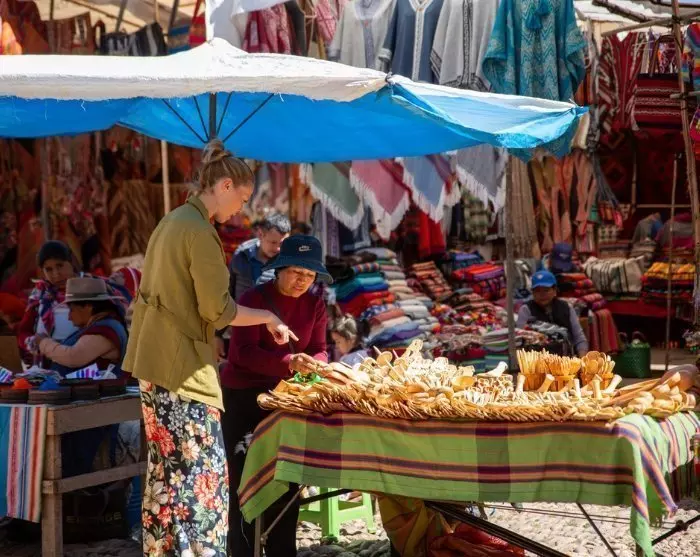 Heute begeben Sie sich auf einen Ausflug ins Urubamba-Tal, das Heilige Tal der Inka. Ihr erster Halt ist Pisac, das besonders für seine lebhaften Märkte bekannt ist. Hier gibt es alles – von Pullovern aus peruanischer Wolle über Musikinstrumente bis zu Gemälden, Textilien und Schmuck. Pisac ist darüber hinaus berühmt für seine beeindruckenden Ruinen oberhalb des Ortes. Sie wurden aus kleineren Steinen gebaut als die in Sacsayhuaman, doch die Präzision beim Zuschnitt und der Passgenauigkeit ist wirklich erstaunlich – ebenso wie der atemberaubende Ausblick.